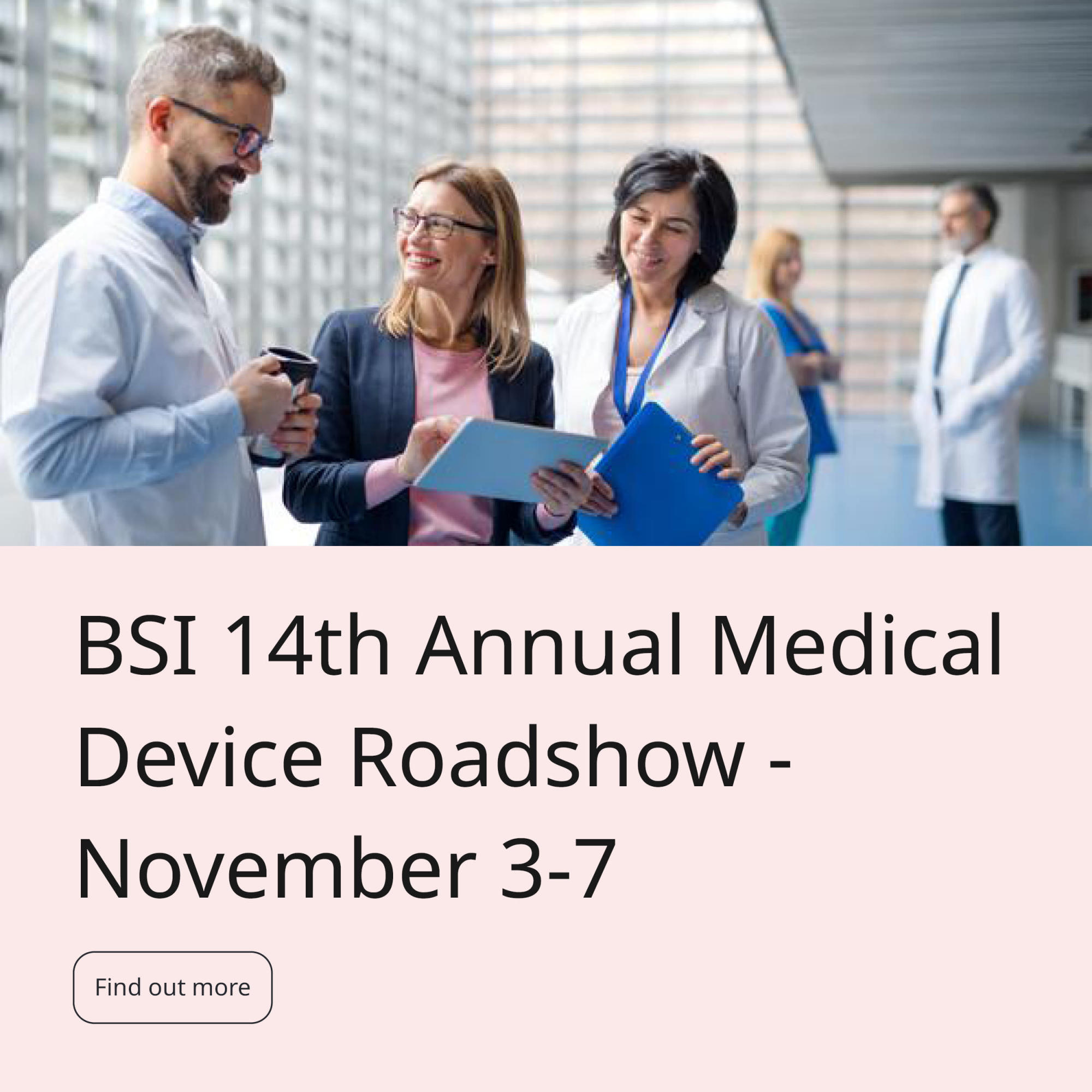 Join BSI for our 14th Annual European Medical Device Roadshow at one of 3 locations - Burlington, MA; Santa Clara, CA; Minneapolis, MN. Each 1-day event will focus on current hot topics related to European medical device regulatory and quality assurance requirements and is ideal for medical device manufacturer regulatory affairs, quality assurance and related consulting community. Learn more about the topics and Register Now