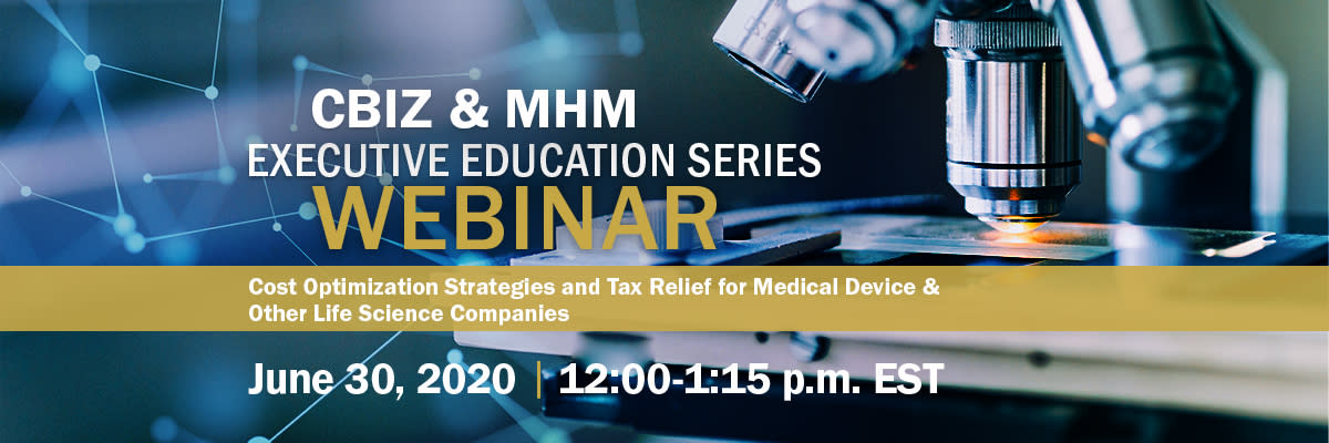 WEBINAR: COST OPTIMIZATION STRATEGIES AND TAX RELIEF FOR MEDICAL DEVICE AND OTHER LIFE SCIENCE COMPANIES