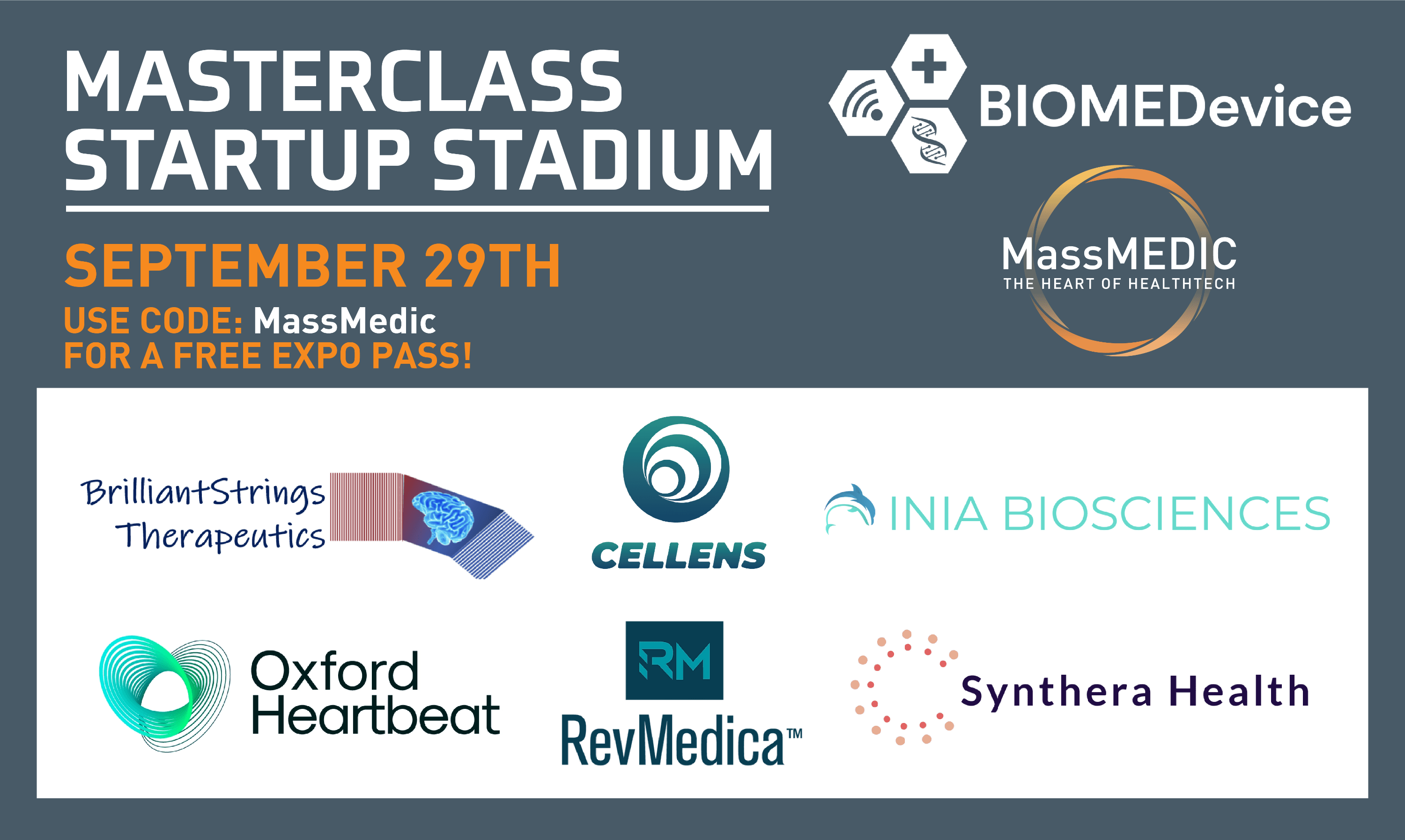 Free registration to join the Start-Up Stadium with code MassMedic